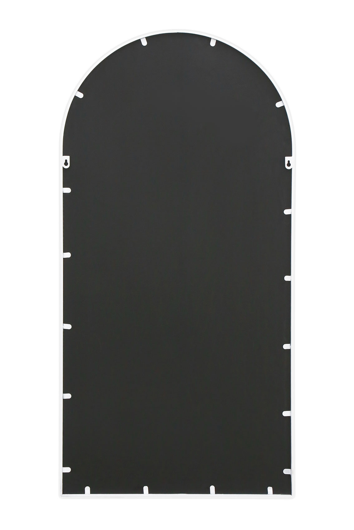 Elevate your space with the Somerton arch mirror, where sleek modern design meets practical versatility. The crisp white steel frame, 2cm wide at the face and 3.3cm deep, outlines a graceful arch that draws the eye and softly reflects the world around you. Measuring 120 x 60 x 3.3 cm and weighing just 12kg, this large mirror feels substantial yet easy to handle. Its clear glass surface, without bevelled edges, delivers a seamless reflection that makes rooms appear brighter and more spacious. Whether you hang it indoors in a hallway, living room or bathroom, or outdoors on a garden wall or patio, this mirror withstands the elements with its durable steel construction and plastic sheet backing. Portrait hanging orientation is handled in seconds using the two keyhole fixings on the back, simply hook onto two screws. To keep it looking fresh, wipe the frame and glass gently with a soft damp cloth, avoiding harsh cleaners. Bring light and architectural interest to any setting with this chic artful piece.