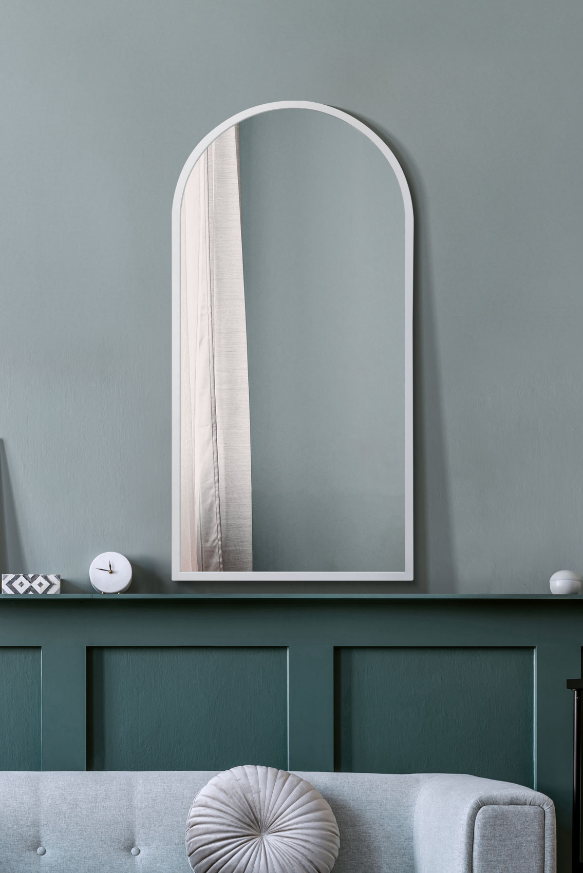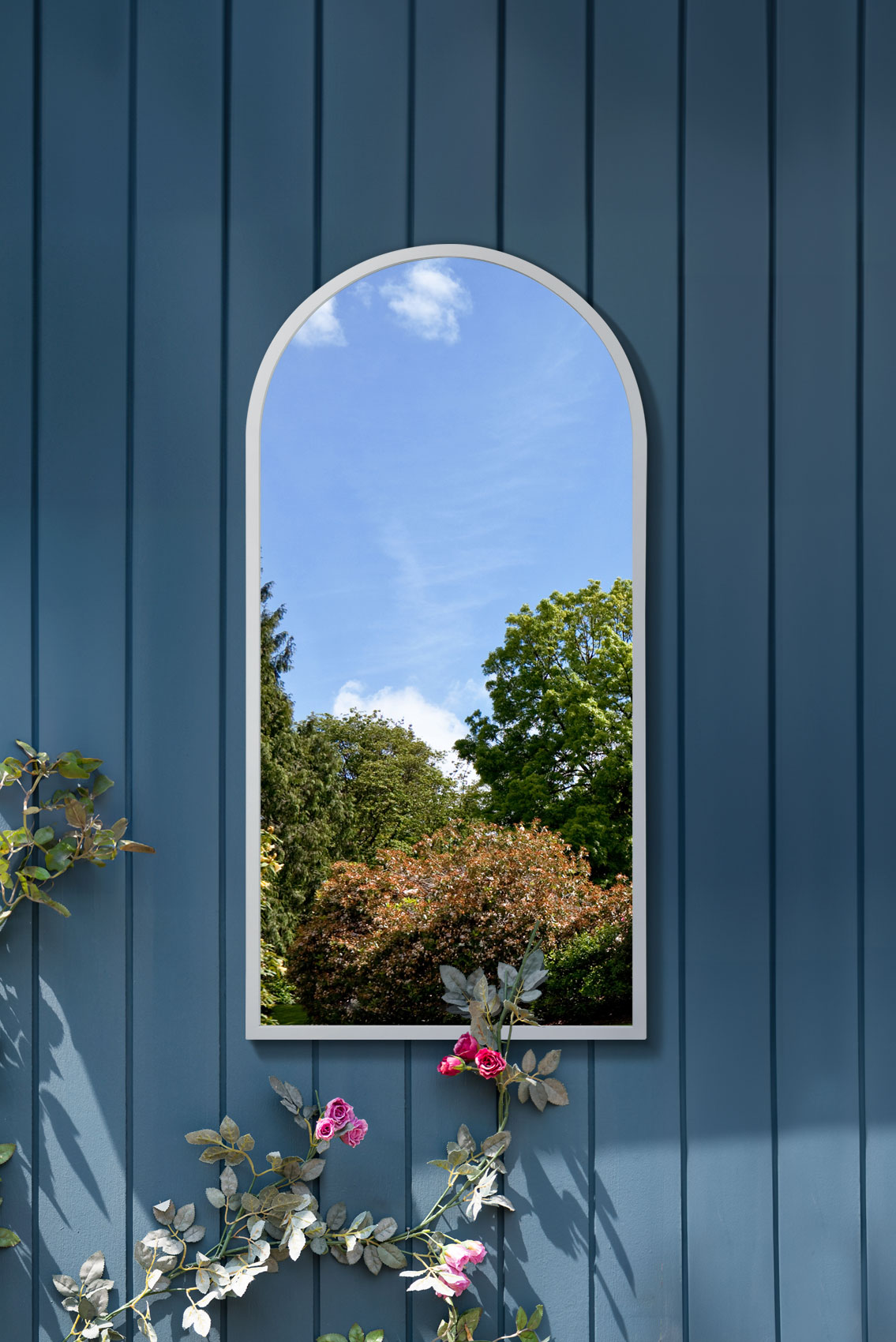 The Somerton arch mirror brings airy charm anywhere with its slim white steel frame and graceful curved top. This large 120 x 60 cm mirror brightens corners indoors or on a garden wall, reflecting light beautifully.