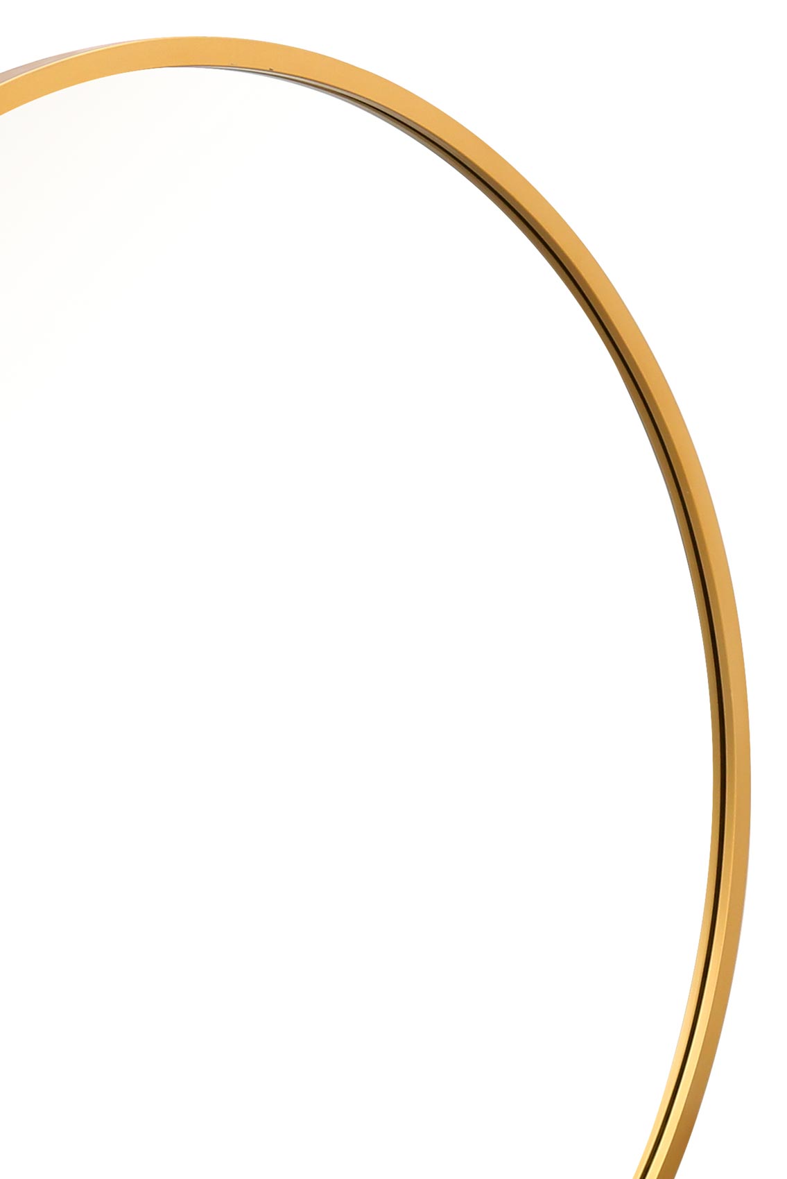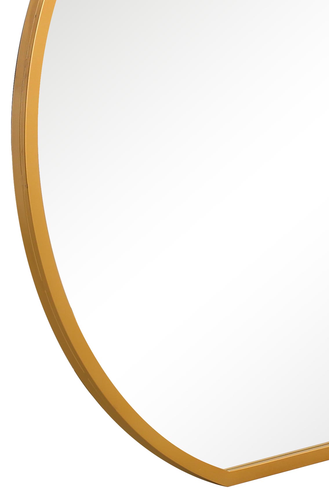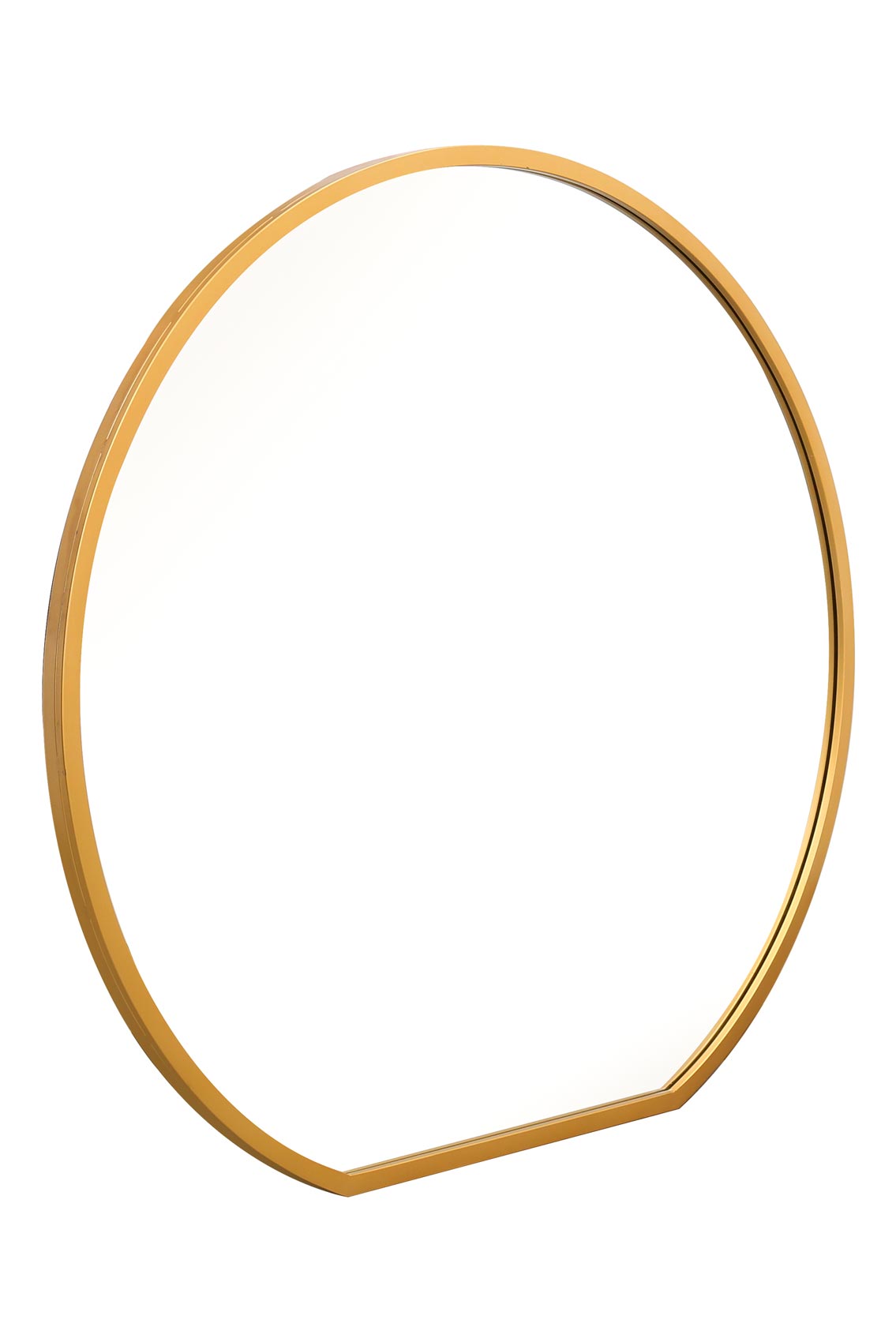 Meet the Tavistarc round mirror in a sleek gold metal frame with a subtle flat base edge. Ideal for indoor or outdoor use, this lightweight yet sturdy accent brightens any room with a modern twist and easy wall mounting.