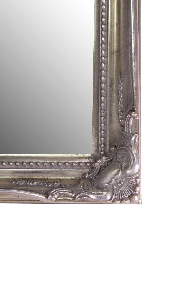 The non-bevelled reflective glass panel sits inside of a frame comprised of a high quality casting resin, which makes up most of the structure of the frame including the embellished details.