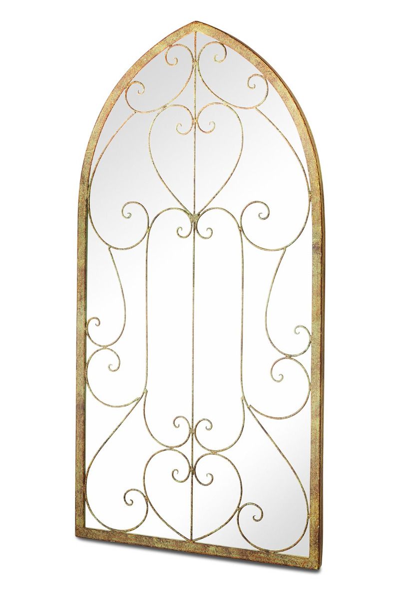 The exquisite Williton gold arch wall mirror presents a masterpiece that marries elegance and serenity. Its metal curling strands gracefully extend across the entire expanse of the glass pane, creating an awe-inspiring visual that is both captivating and soothing. The intricate design, reminiscent of curling vines, sets the stage for an organic connection to nature, allowing for a peaceful and loving atmosphere to envelop your garden.