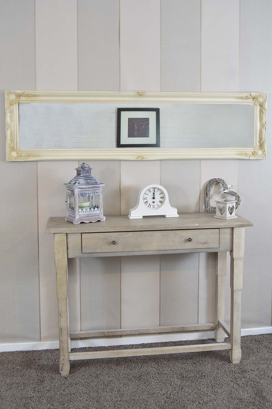 Coming in at 168 x 46 x 5 cm, this shabby chic ornate mirror can with its lengthier form of frame can work particularly well in those tighter spots where less wall width is available, but a fair amount of wall length can be filled. Conversely, it was also be hung landscape along a stretch of a wall to help create the illusion of a wider space in a smaller room.